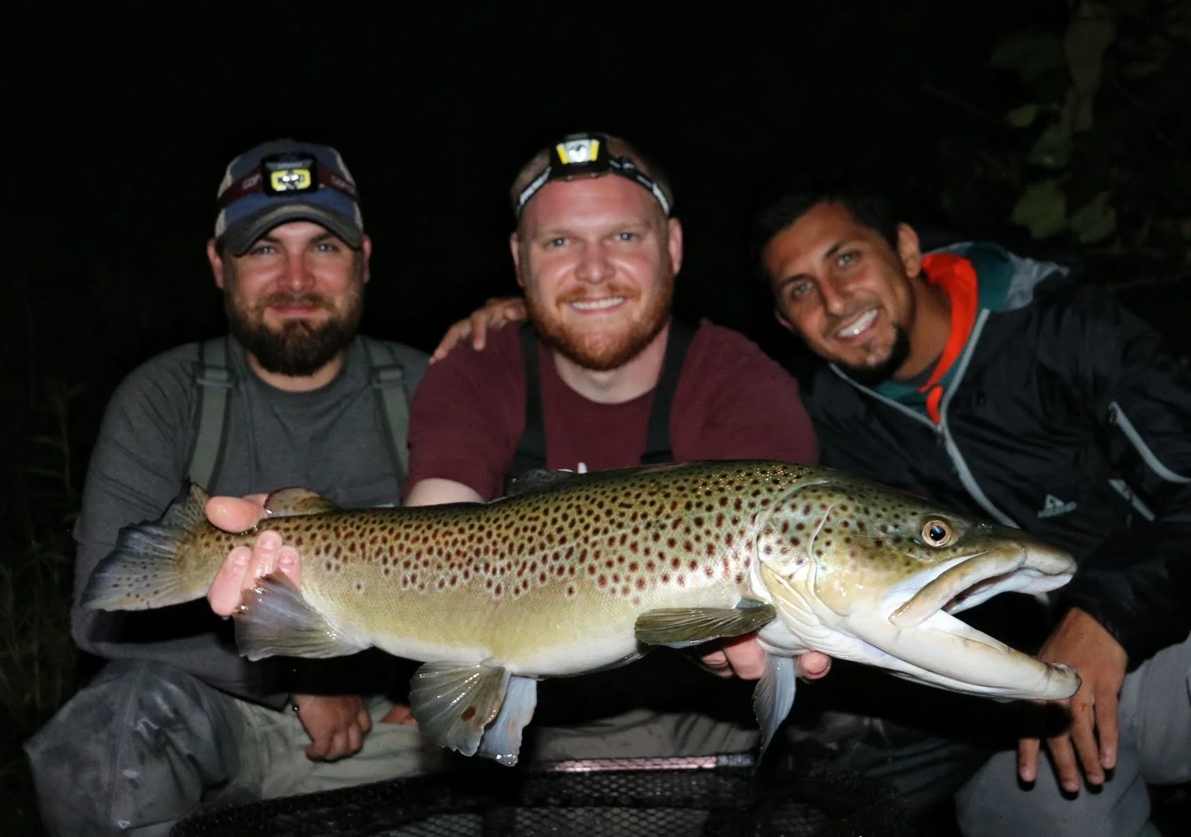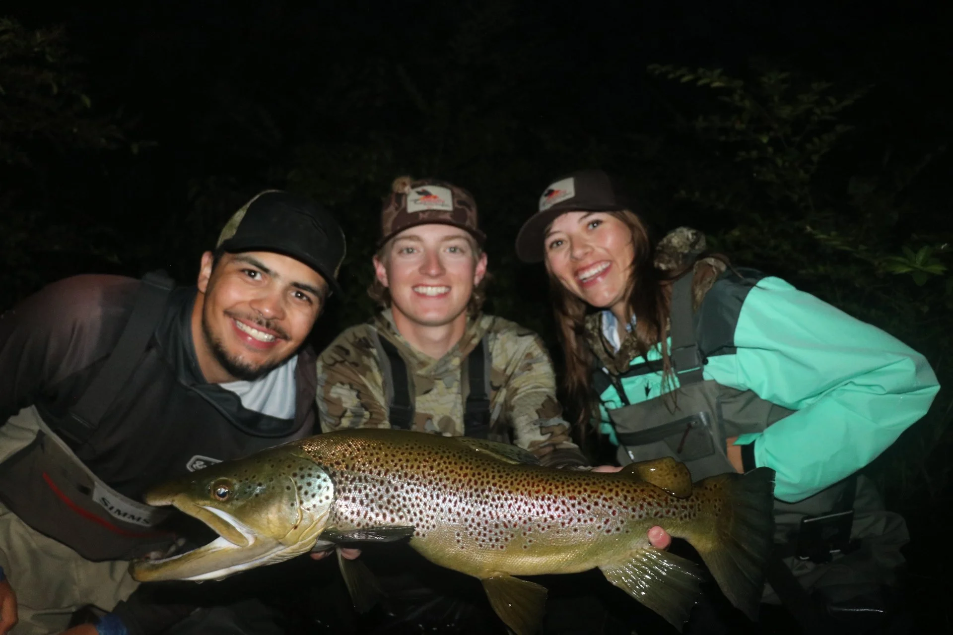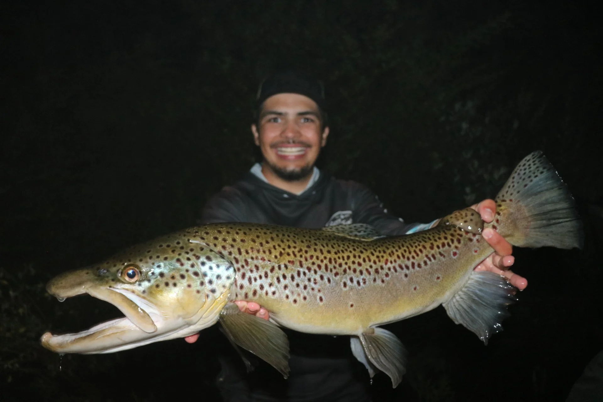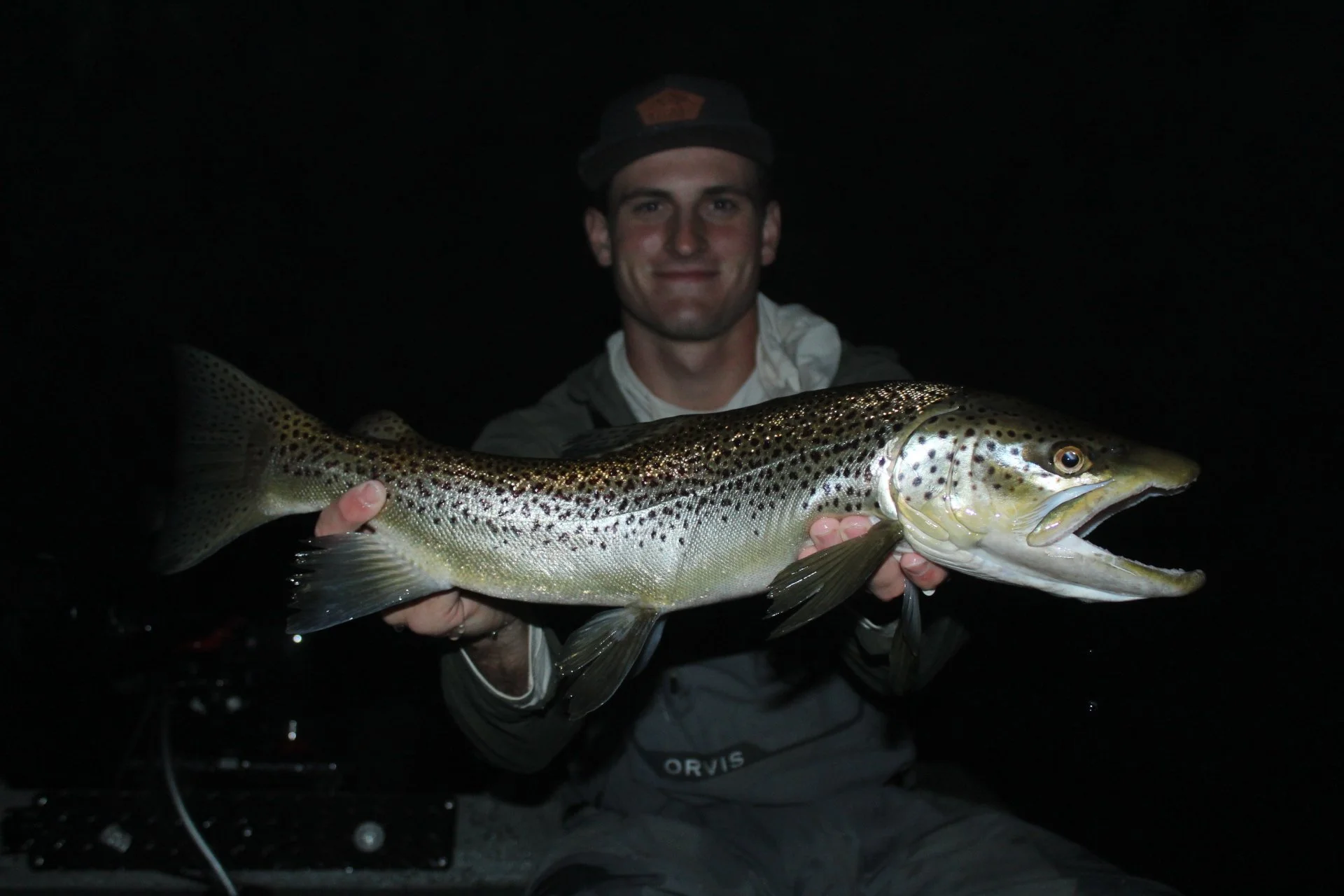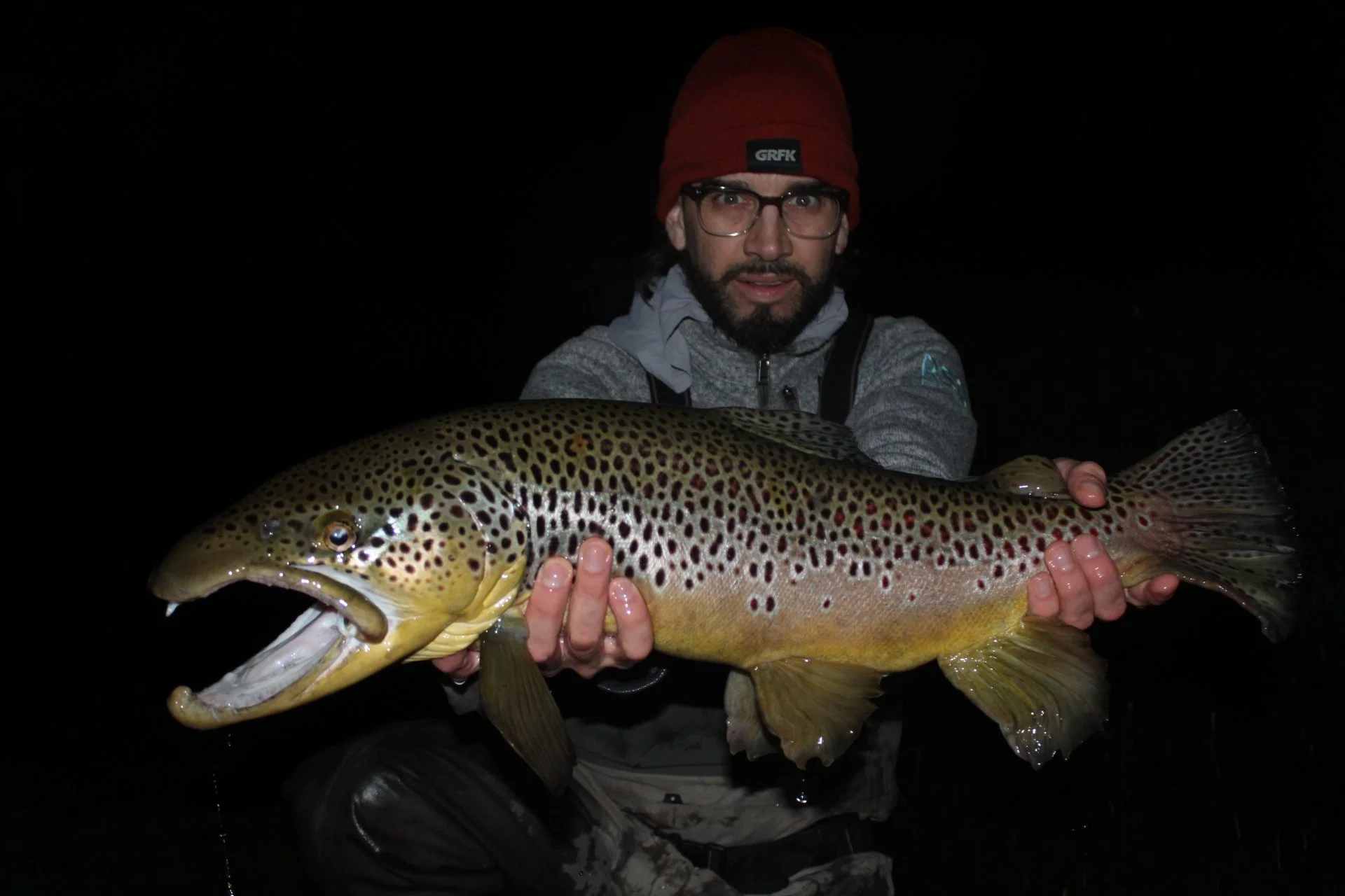 Our proprietary GlowTabs, allow us to hunt giant trout at night.